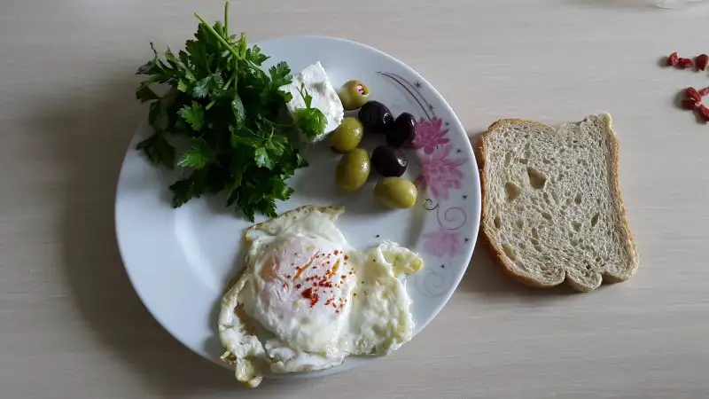 Günaydın kahvaltı peynir zeytin haşlanmış yumurta 1 dilim ekmek