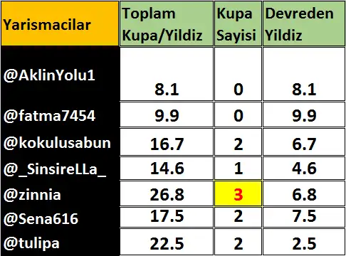 Teşekkür ediyor, kazanan arkadaşlarımı da tebrik ediyorumSon kupa sayilari ve siralama ... 27 Haziran 2018