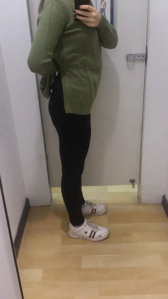 bu hafta yandan bir foto , bol kazaktan oluşan yapay bir göbek ve o beğenilen bacakların yandan görüntüsü (kalın olduğunu görün diye itina ile çekildi )