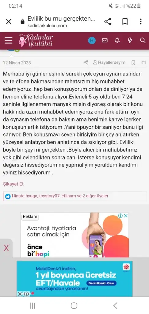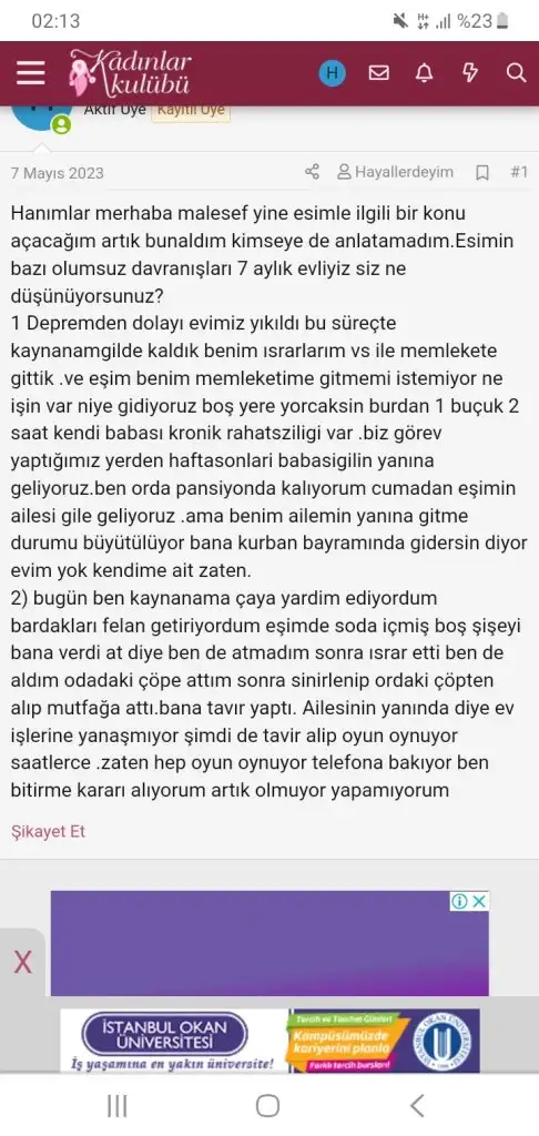Sorunlar kv yuzunden mi ? Esinizde düzelme umudu varmı ? Eşin annesinin etkisinde ise bebek yoksa boşan diyebilirim ama birlikte terapi alsanız daha iyi olur sanki.Deprem etki bırakmış olabilir.Kızlar benim konuyu biliyorsunuz.Ayrılmayı düşünüyorum ve pazartesi avukattan bilgi alacağım. Beyfendi 2 kez aradı , açmadım sizce şans vermemekte haklı mıyım ?