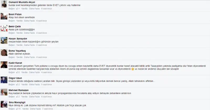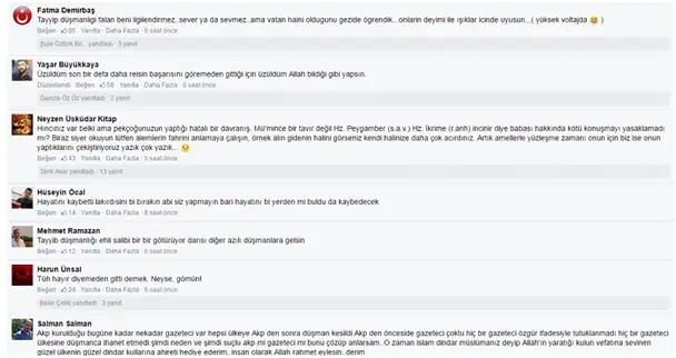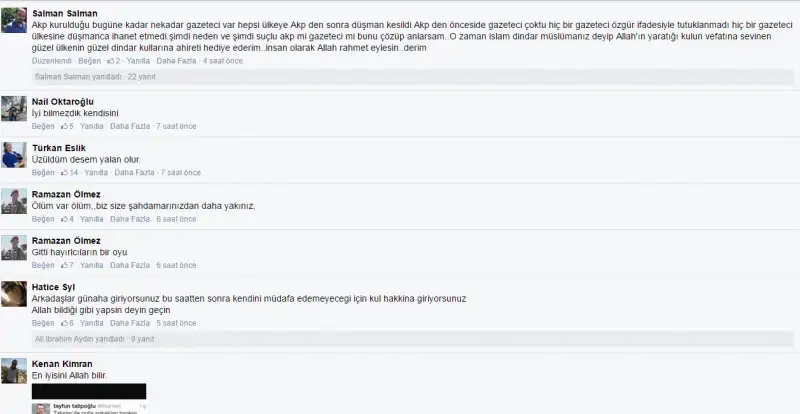 Zey link hata veriyor.Yeniden yüklermisin.Aman Allah'ım aman Yarabbim. Az evvel Tayfun Talipoğlu'nun vefatı ile ilgili şu facebook linkini tıkladım ve altındaki yorumlarda kanım dondu. Biz ne zaman bu hale geldik, ne zaman insanları münafık gavur diye ayırdık?? Gezici diye kafir ilan ettik? Sanırsam bu ülkeden bazı insanlardan çok şey bekliyoruz, çünkü dindarım diyen bir kesim ölenin arkasından özelini, Allah'a olan inancını, imanını bilmeden sallayıp tutuyor. Bunlar dindar değil, olamaz. Hoşgörü insanı Peygamberimizin ümmeti bu olamaz. Ölüye saygımız yok, iftira atıyoruz, küfür hakaret ediyoruz ama müslümanız. Hem de neden birisi AKP'li değil diye, Gezi eylemine katıldı diye utanmazca, arsızca arkasından sallıyoruz, inancını bilmeden, imanını bilmeden Allah'ın yargılayacağı kulu utanmazca cehenneme gönderiyoruz. Hayır hayır siz müslümanlığı anlamayan, boş ve kof insanlarsınız ve sizinle aynı ülkede yaşamaktan UTANIYORUM. İçim acıdı içim....