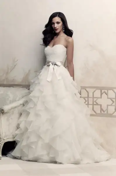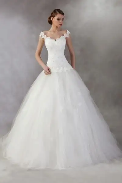 Size olan şey, gelinlikçinin her zamanki gibi bir prenses etek çalışması ve belde bolca büzgü yapmış olması. Oysa ki sizin modelde belde büzgü mevcut değil. Ancak istediğiniz modelde de etek kumaşı organze değil tül.
