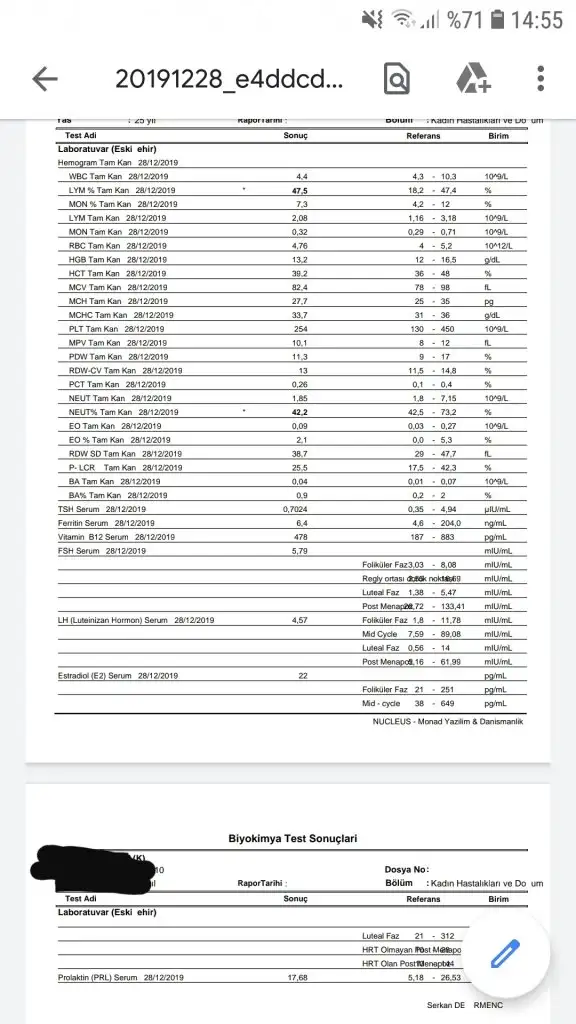 Hormon sonuçlarıda yazıyor içinde fsh lh e2 prolaktinkan test