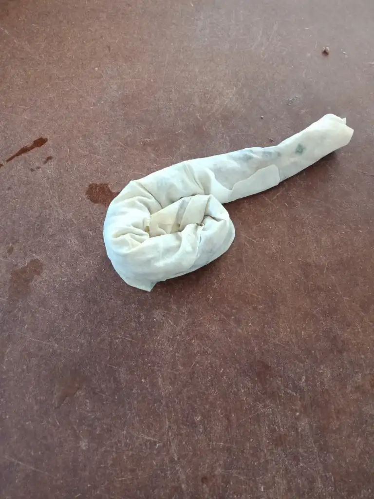 Kıymalı harçtan koyup çok sıkı olmayacak şekilde sarıyoruz