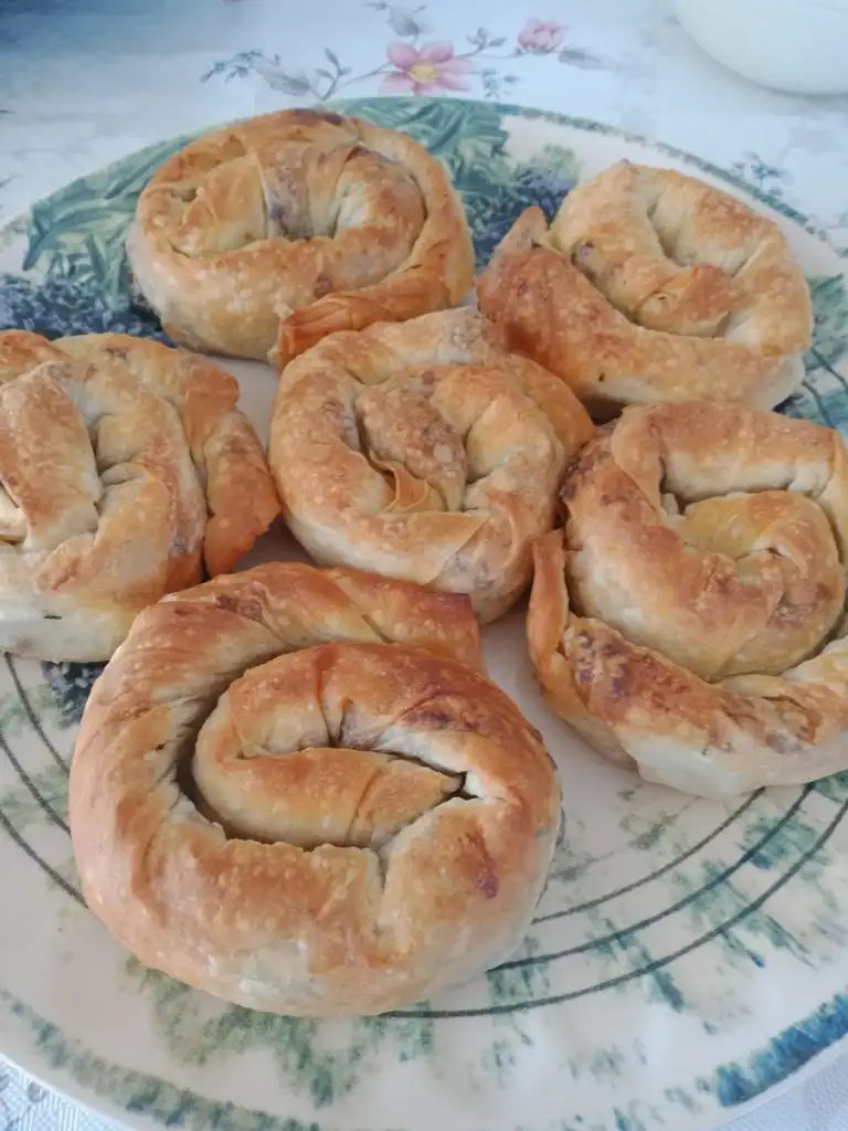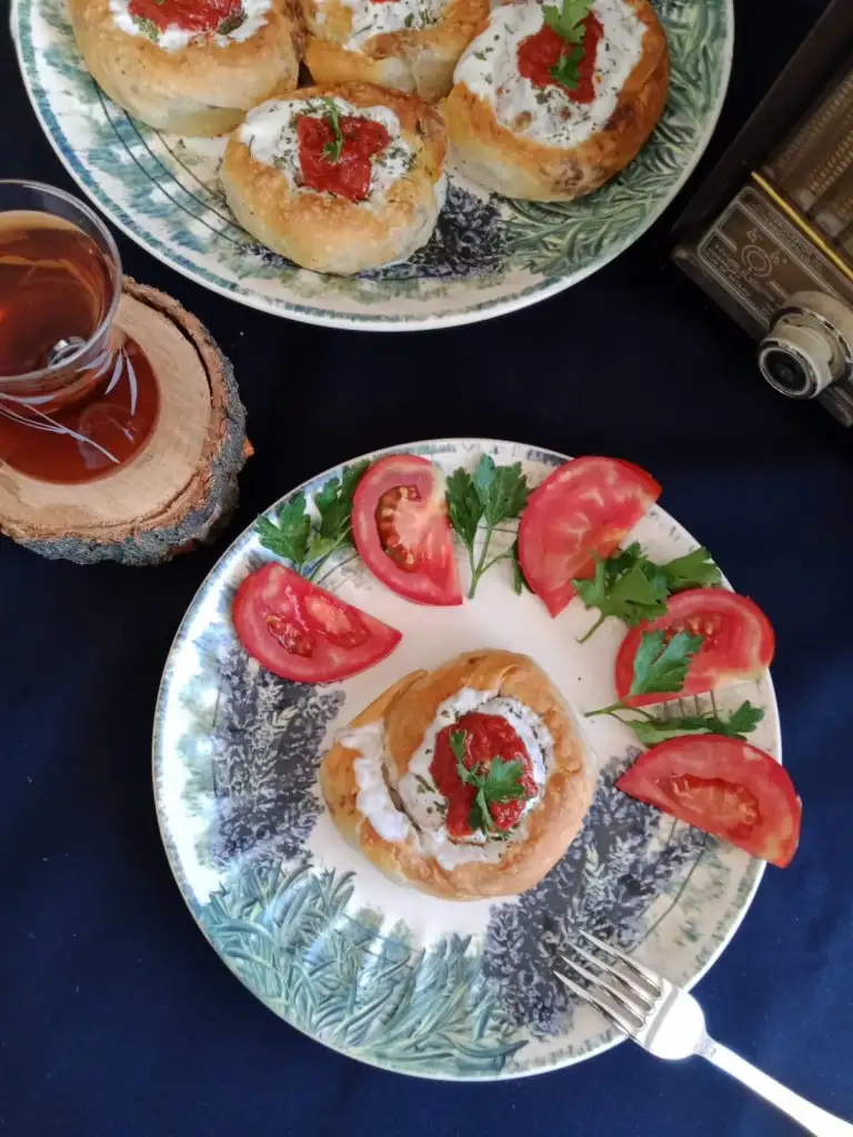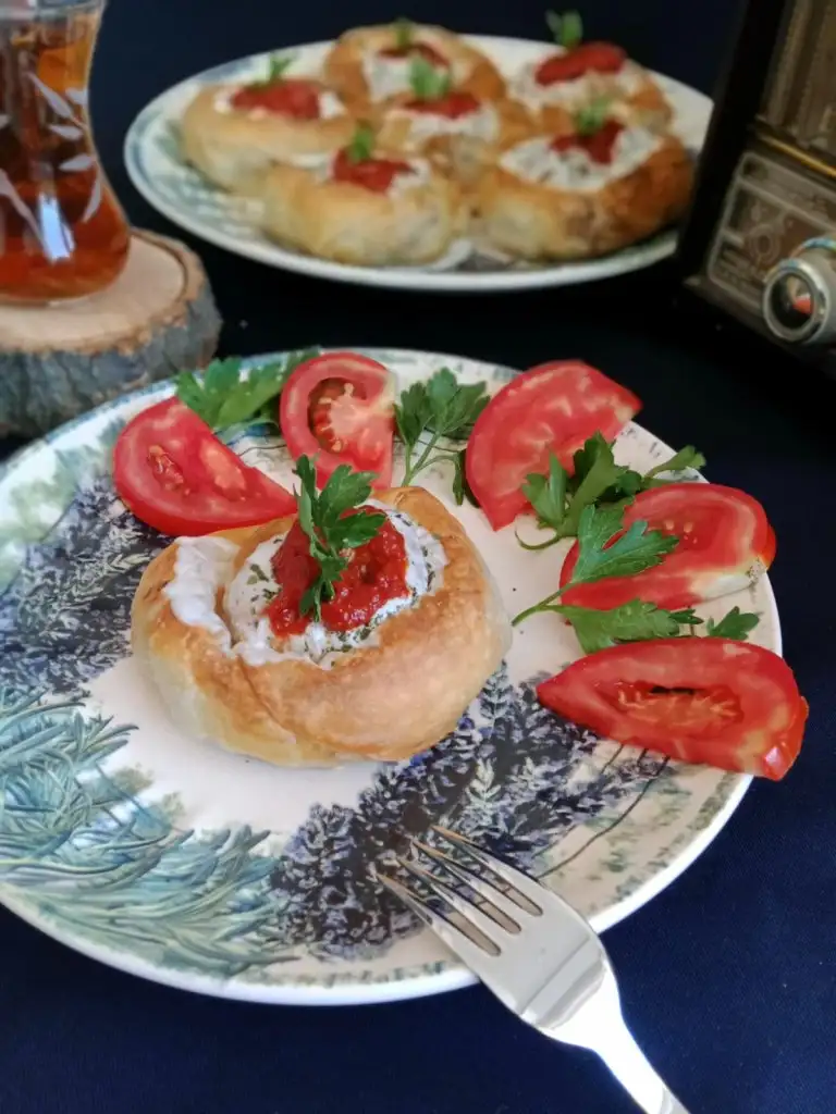 Kıvırıp gül böreği şeklini veriyoruz.