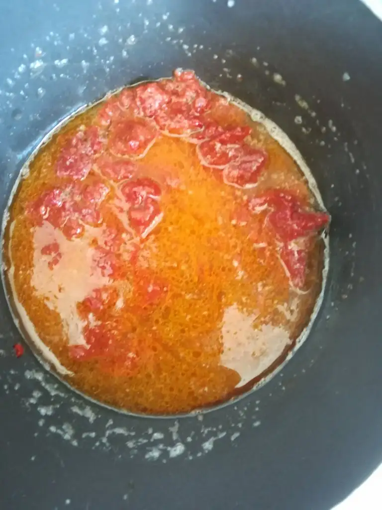 Salçalı sos için tereyağını eritiyoruz.Salçayı koyup su ile inceltiyoruz.
