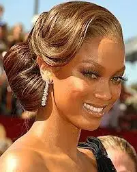Elbise ve rengi çok zarif. Saç da ensede topuz olabilir.