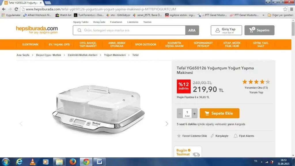 Bebek olduktan sonra ona günlük yoğurt yapmak için annemden getirdim o alıp hiç kullanmamıştı. Bende kullanmayı beceremedim yada bir sorunu var bilemedim. Çok ısıtıyor gibi geldi bana. Bunu göze alarak alın bir sorun olabilir göstermedim hiç. Hepsiburada da 219 lira. Benimkinin içinde 6 adet su bardağı kadar kabı var cam. Hepsiburada da satılan plastik ve büyük kaplı. Bu küçük kaplarda isterseniz delikli plastik aparat sayesinde süzme yoğurtta yapabilirsiniz. Ben arızalı fiyatına satıyorum kargo dahil 60 TL.