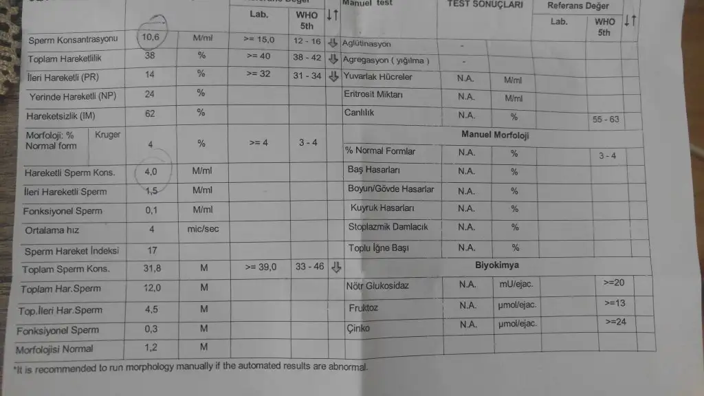 Maşallah size... ama ilacın olumlu sonuç verdiği birini görmek umud verici gerçekten... bizede dr 3 ay wm evolotion die bir ila.ç verdi.. 2 ayımız bitmek üzere.. ama bizim hızımız %1İleri hareketli toplamı %28’den %35’e çıkmıştı bizim, iki testin arasında 2 ay kadar zaman geçmişti. Progeny m’i eşim günde 2 kez 3 ay kadar kullandı. Onun dışında Krilom Omega 3 ve Q10 kullanmıştı günde 1 kez. İnşallah siz de hayırlı haberlerle gelirsiniz.