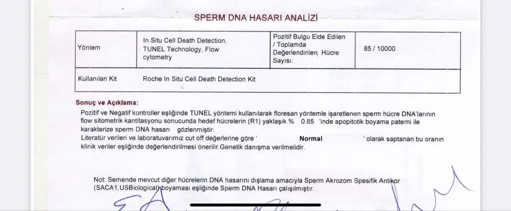 Arkadaşlar merhaba biz de Kaan hocada tedavi gördük. Öncelikle oksidatif stres testi normal çıkmadı. Bikaç ay ilaç tedavisinden sonra dna hasar testi istedi %5.33 lük bir sonuç aldık. Ama Morfoloji %2 bu şartlarda isterseniz 6 ay bekleyin isterseniz tüp bebek yapın tutar dedi. Ama bana göre sonuçlar iyi değil gibi. Sadece dna hasarın normal olması yeterli mi.