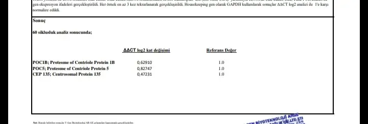 Bizde gittik canim ilk olarak y gen diye bi labaratuvara gönderdi 800 tl ye test yapilfi 1 ay kadar bi zaman sonra sonuclar cikti ama yüzde olarak bisey yazmiyodu doktor sadece hasar var dedi 3 aylik ilaclardan sonra düzen labaratuvara gonderdi tekrar test yaptirdik şuan sonuclarin çıkmasını bekliyoruz acikcasi ilk gönderdiği labaratuvar bana sacma geldi sonuclari ne tahlili olduğu yüzde hasarı falan hicbirsey yazmıyo bakalim diger sonuclar nasil gelecek