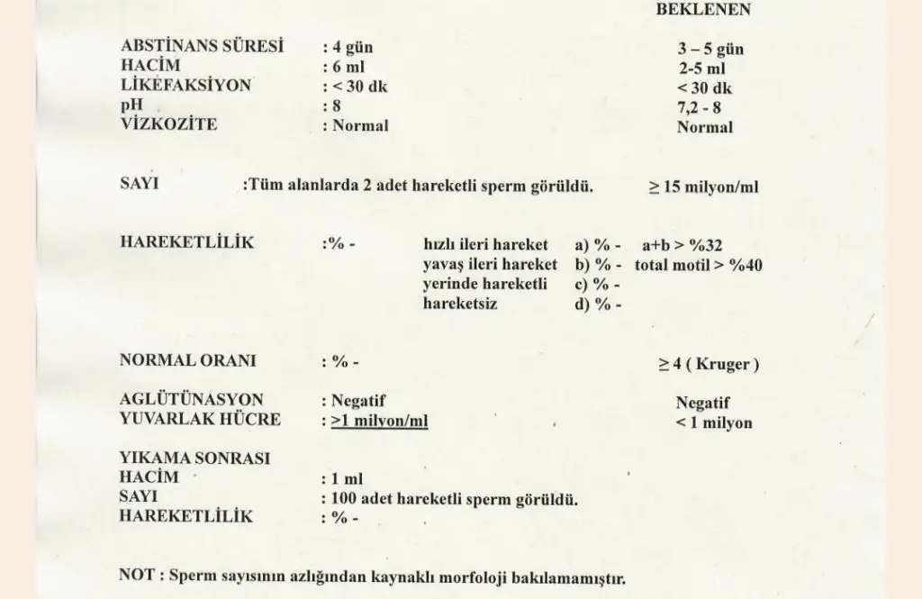 Merhaba şubat ayında eşime özel hastanede yaptırdığımız testlerde eşimin sperm sayısının iyi ancak ileri hareketliliğin çok az olduğunu ve morfolojinin düşük olduğunu öğredik, gittiğimiz doktor ilaçla tedavisinin zor olacağını ve eşimin ameliyat olması gerekiğini söyledi ancak biz başka özel muahenehanesi olan başka doktora daha gittik bize vermiş olduğu 3 aylık hem bitkisel hem ilaç tedavisi ile ilerleme kaydettik, 3 aylık daha tedavi gördükten sonra doktor eşimin değerlerinin normale döndüğünü ve normal gebelik denememizi söyledi ancak olmazsa tüp bebeğe yönlendireceğini söyledi, biz doktorumuzdan çok memnun kaldık en azından 3 aylık tedavi denemekte fayda var doktorumuzun kliniği Gaziantepte Murat Mermerkaya