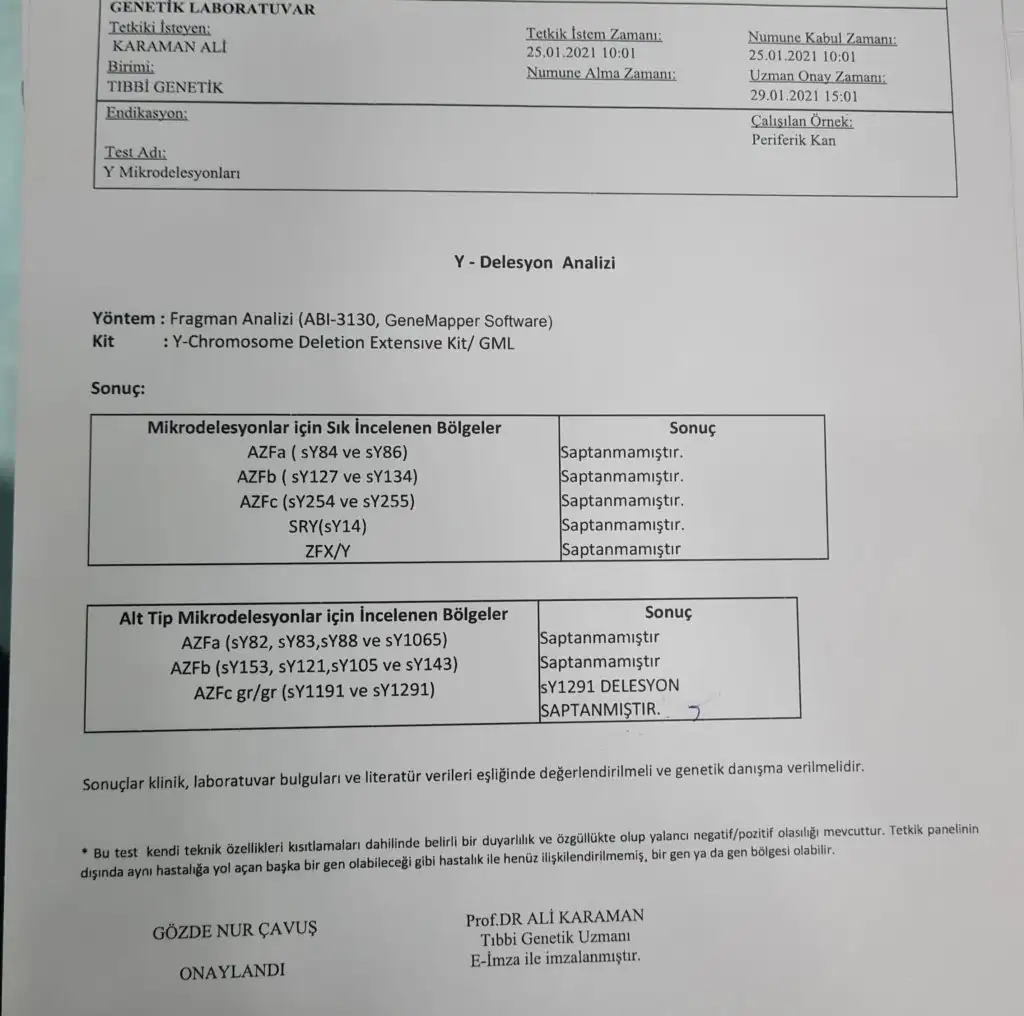 Azosperm cikmadan önceki testi 😪 genetiği temiz cıkmıştı die hatırlıyorum
