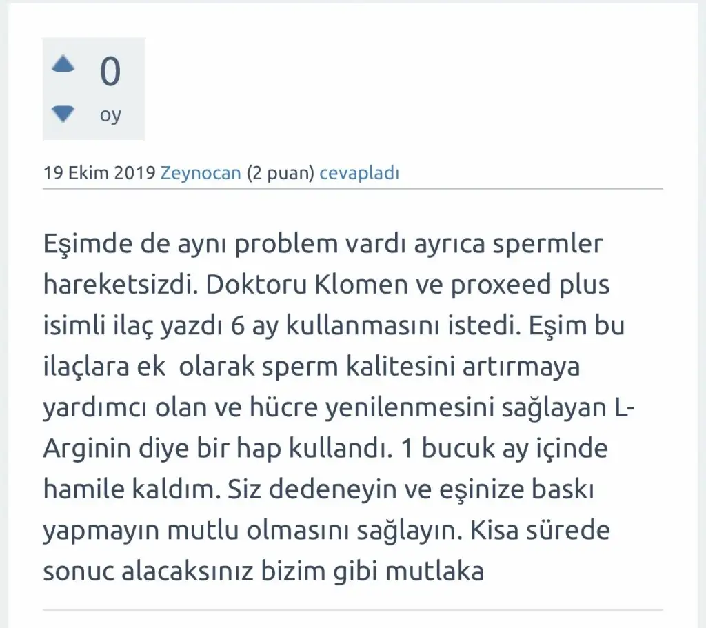 Kullanmadim ama duydum böyle birşeyi bn hatta hem kadın hemde erkek kullanıp hamile kalan da duydumKızlar eşimin sperm sayısı 10 milyon, Hareketli sperm sayısı 2 milyon çıktı. Doktor eşime klomen verdi 1 ay kullansın aşılama yapalım dedi. Hiç sperm için klomen kullandınız mı?