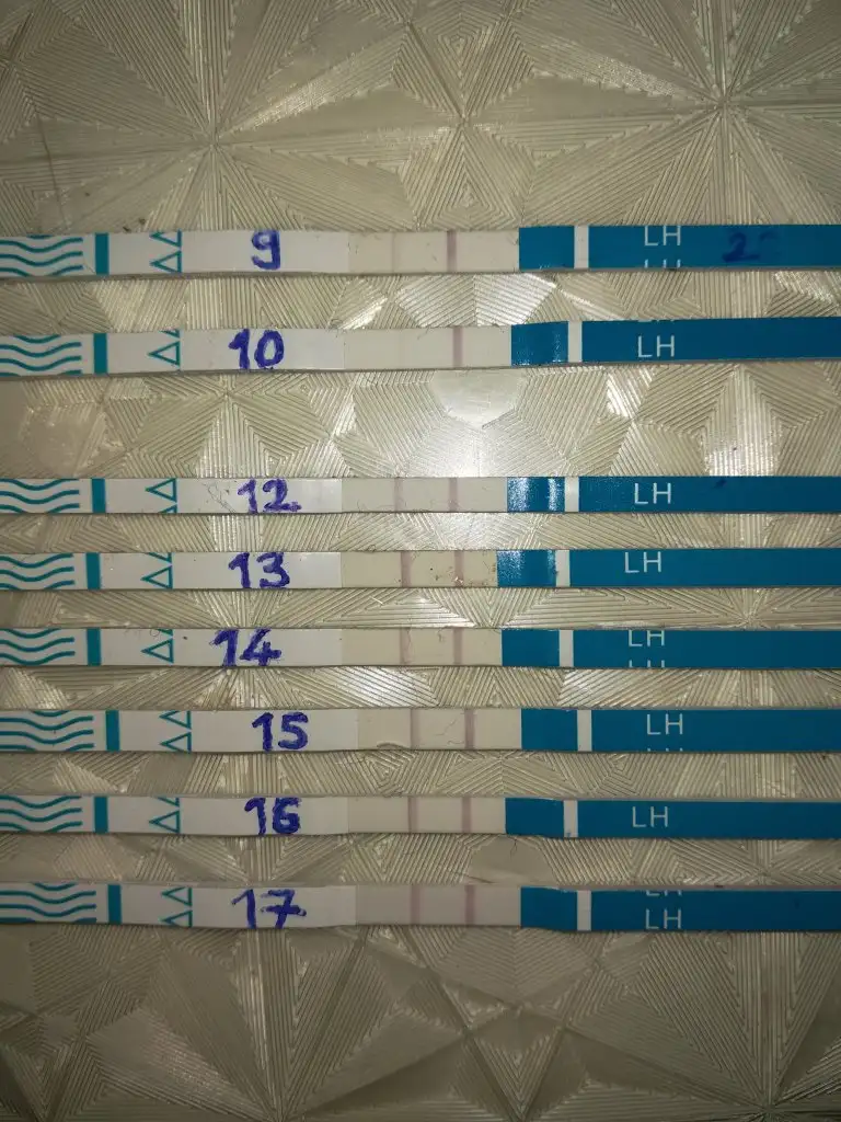 İnnovita vardı elimde ama şuan laboquick kullanıyorum. Sana o ayki çatlatma iğnesi olduğum testleri yollayayım 11.günde iğne olmuştum iğneden 3 saat sonra ovulasyon koyulaşmaya başladı. Ama garip olan şey iğneden önce ovulasyon testim hala çok silikti yumurtamın boyutu 21 mm'den fazla olmasına rağmen 😳 Bu aşağıdakiler iğne etkisiydi 12-13 en koyu günlerimdi ve 9 gün boyunca koyuydu sonra silinmeye başladı