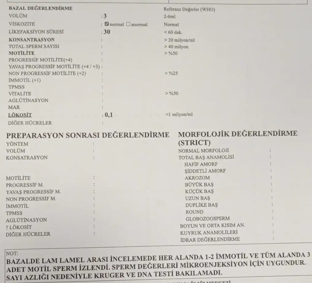 Benim de eşim de sperm sayısı baya düşük ve hareketsizliği cıktı 2 yıldır evliyiz hiç korunmadık doğal yolla biraz imkansız olsa da bir umut hep bekledik ama olmadi