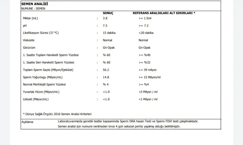 Kızlar merhaba eşimin sperm testi sonucu anlayan yorumlayacak kimse var mı acaba