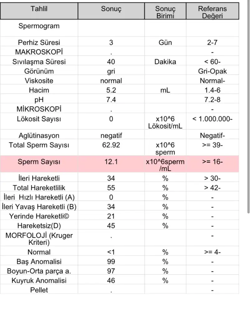 Sperm test sonuçlarını anlayan varsa yorumlayabilir mi? Anomaliler nedir?