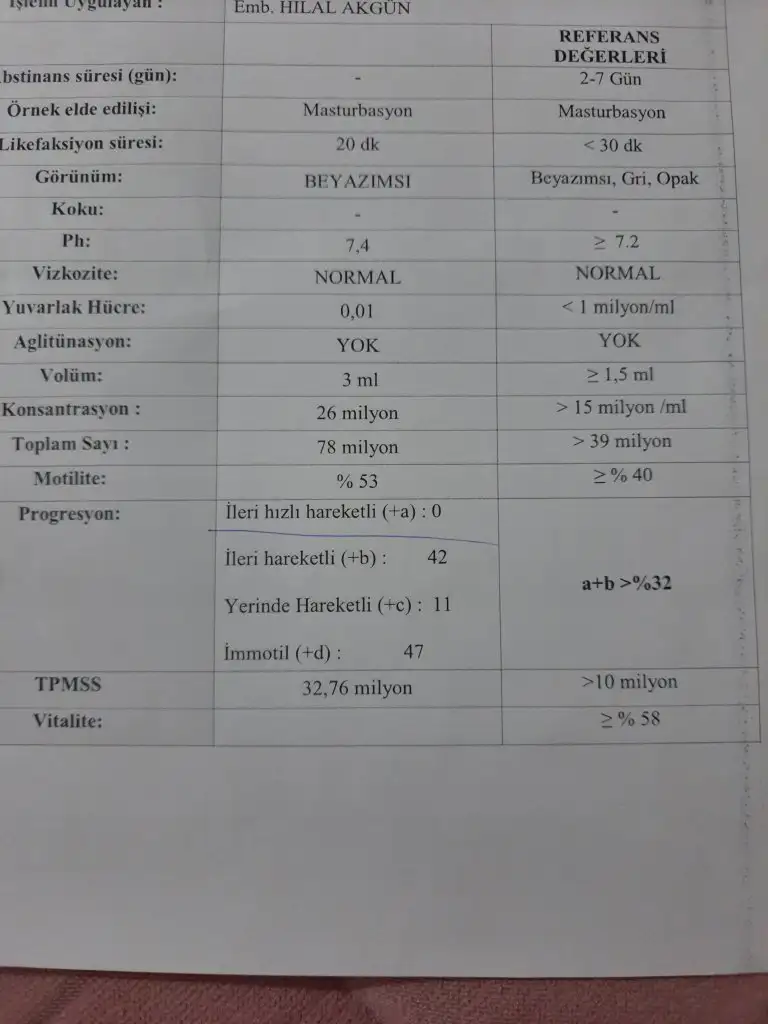 Erkek İnfertilitesi Sperm testi bilgisi olan var mı