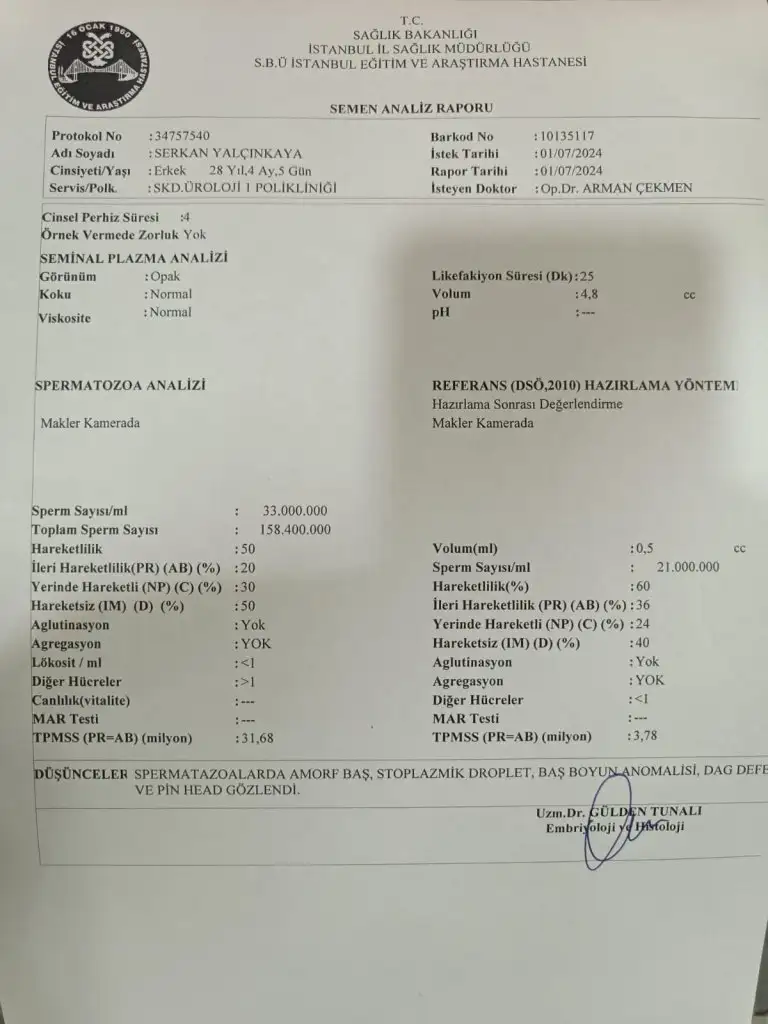 Morfoloji ye baktırın, morfoloji 0 degilse sorun yok.Merhaba eşimin sonuçları böyle anlayan varsa yazın sorun var gibi sanki