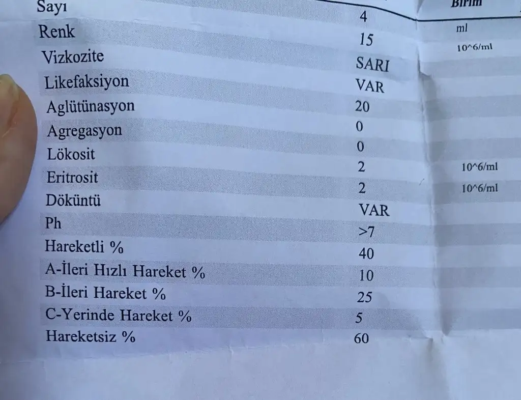 SPERM TESTİ SONUCU ACİL BAKIN NOLUR