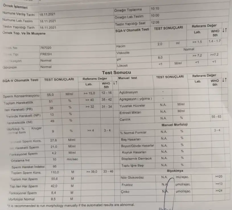 Merhaba kızlar eşimin sperm testi sonucu haftaya hastaneye gidecgm icin merak ediyorum sonuclarini anlayanlar yorumlayabilirmi