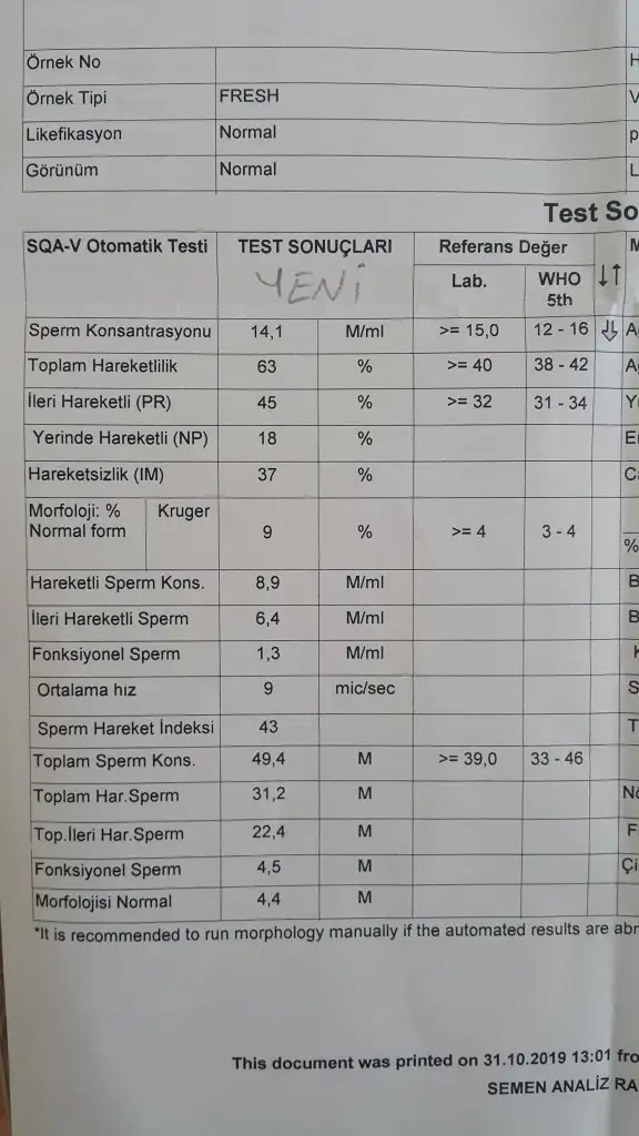 Merhaba hanımlar bebek istiyorum hem de çoook. Rabbim hepimize nasip etsin. 3 aydır klomen tedavisi gördüm işe yaramadı çünkü yumurta ve çatlamada zaten sıkıntı yok. Ürolog sperm testine baktı ilk sıkıntı bu dedi 14 milyon şuan ama en az 15 milyon olması gerek. Eşim varikosel ameliyatı olacak 5 ay önceki test 5 milyondu keçiboynuzu sayesinde artmış. Hem de 3 kat arttı. Son 1 aydır kullanıyor. Acaba bir ay sonra daha da yükselme olur mu .