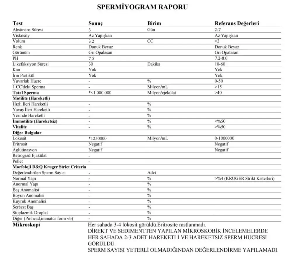 Sperm testi sonucu lütfen bakın 😥
