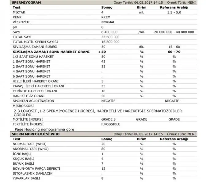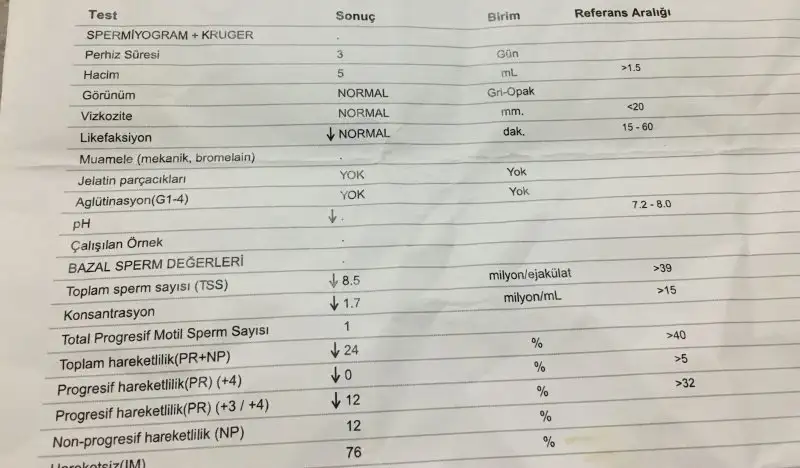 Eki Görüntüle 1996593 Kızlar bazı ark sperm analizini ve raporları okuya biliyor ,eşimin sperm sonucuna göre normal yollar ile çocuk sahibi olmamız imkansız mı ????
