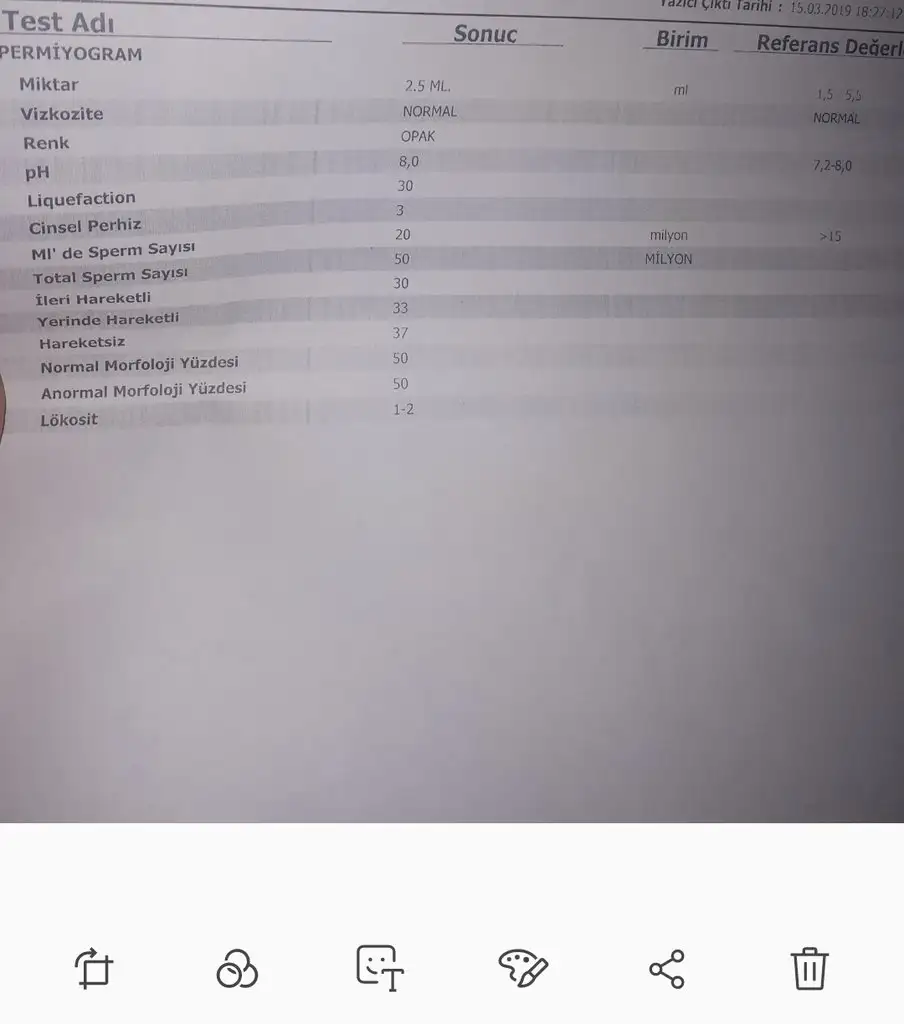 Toplam sperm gayet guzel