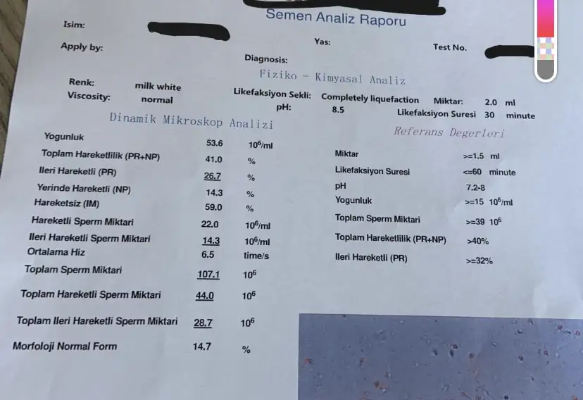 Erkek İnfertilitesi Sperm testi sonucuma bakarsanız sevinirim