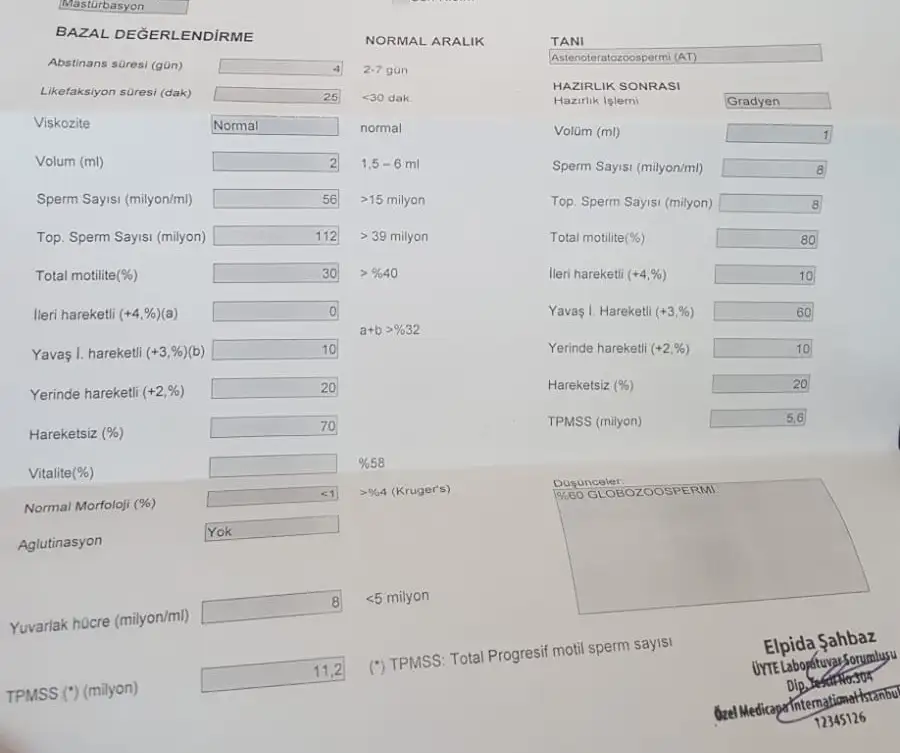 Kızlar Merhaba, eşim bundan 4 ay kadar evvel bir özel hastane de sperm testi yaptırdı. Ardından 3 ay boyunca bir hap kullandı. Çinli b12 folik asit desteği olan bir hap. Ilk test sonucu nu ve 2. Test sonucunu paylaşıyorum. Yorum yaparmışsınız. . Ve yaparmısiniz. Vitalite niye hep boş gözüküyor?