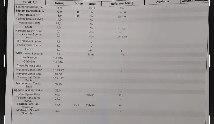 Kızlar anlayan varsa yorumlayabilir mi eşim 6 ay önce varikosel ameliyatı olmuş nasıl bu değerler ?