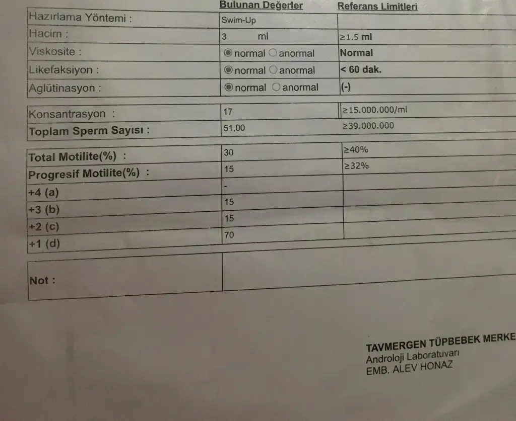 kızlar rica etsem bunu da yorumlar mısınız? 2 negatifim var. Sayı iyi ama ileri hareket yok sanki. Kaç olmalı ki ? doktor zaten tüp bebek yapıyoruz spermin ileri hareketi önemli değil gübi konuştu. henüz ürolog bulamadım ( izmir)