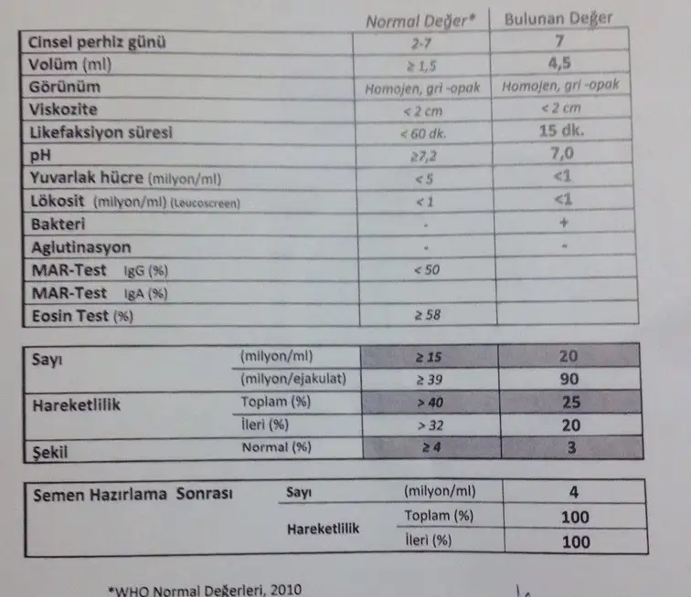 Genel olarak değerler kötü diyemem ama ortalamın da biraz altında. Sayınız sınırda hatta ikinci testte sınırın altında. Hareketlilik 2 testte de sınırın altında morfoloji ise sınırda ama bu değerler hamileliğe engel değil.