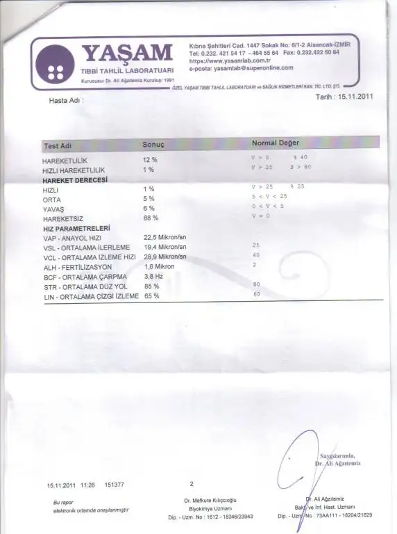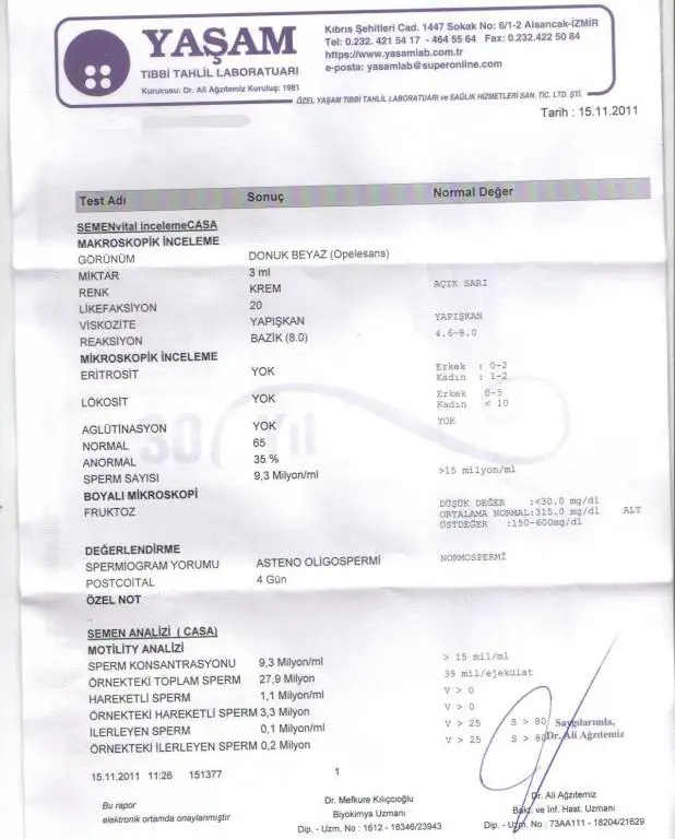 Eşim ağustos sonunda tek taraflı varikosel ameliyatı olmuştu. Ameliyat öncesi değerler üstte. Ameliyat sonrası değerleri ise altta iletiyorum.