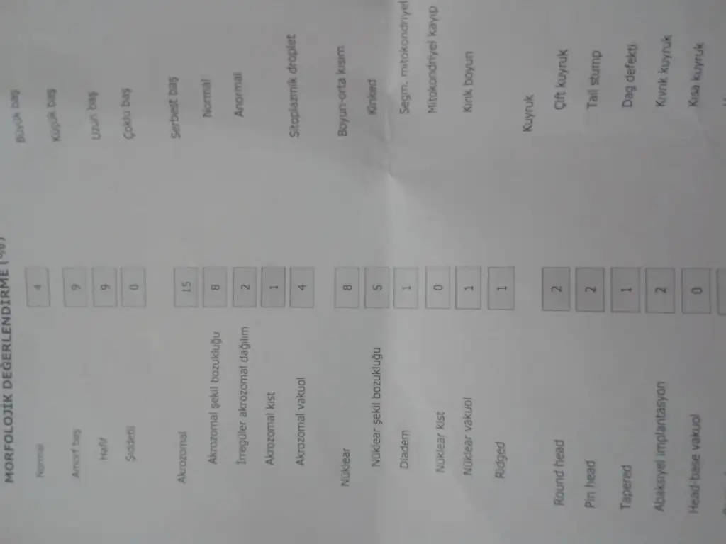 Canım sayı ve hareketlilik çok iyi. Morfoloji Kruger'e göre mi bakılmış? Eğer öyleyse morfoloji de çok iyi.