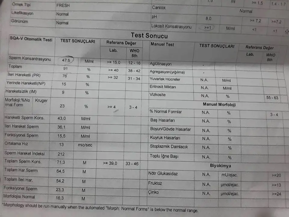 toplamda% 60 hareketli canım bence gayet iyi morfoloji nasılTesti bugun tekrar yaptırdık. Sonuclar: