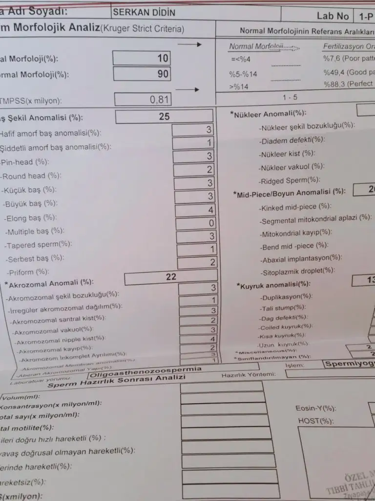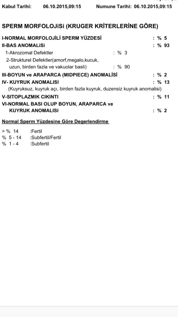 Kruger normal Sperm % 8 arkadaşlar anlayanlar sizce çok mu kötü eşimin değerleri?