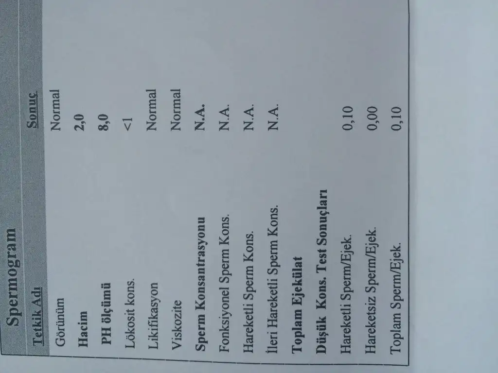 Ya bi ark in gebeliklerinde kalp atisi fln olusmuomus. Dr istemis bunu ve esinin spermlerinde normal olmadiginda gebelik olussa bile saglikli devam etmiyomusSperm testini soruyorsunz sanirm evli ciftlerde bir yil korunmasiz gebelik olmazsa erkekten istiyorlar bir nevi erkek hormontesti sizin icin gerek yok gebelik olusuyr szde