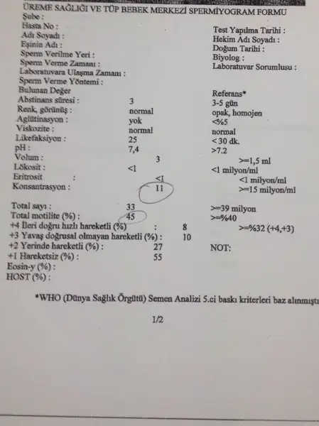 ileri hızlıda bi değişiklik olmadı ama yavaş ve yerinde hızlıda ilerleme oldu.morfoloji sıfırdı 1 oldu sayımız 41 milyondan 48 milyona çıktı.birde bizim konsantrasyon 10,5 du 18 e çıktı.doktor bunun çok iyi bir ilerleme olduğunu söyledi.