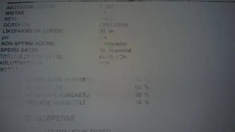 Iyi geceler kızlar bizim eşimin ilk yaptırdığı spermiyogram Sperm sayısı18 milyon du hareketsiz % 48 di yerinde ve hızlı hareketli % 20 di