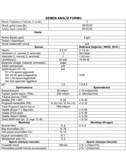 1.cc deki Sperma : 9.000.000 > 30 milyon/mL