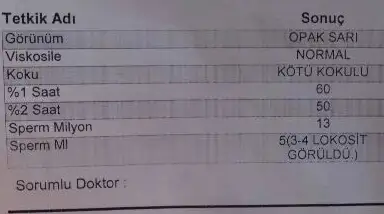 Çok uğraşmışsınız Allah razı olsun deseydiniz laboratuvar görevlisine :KK48: şahsen ben bu teste güvenmezdim bence başka bir yerde tekrarlayın bu ne böyle ph yok morfoloji yok hareket değerleri yok devlet hastanesinde mi yapıldı?