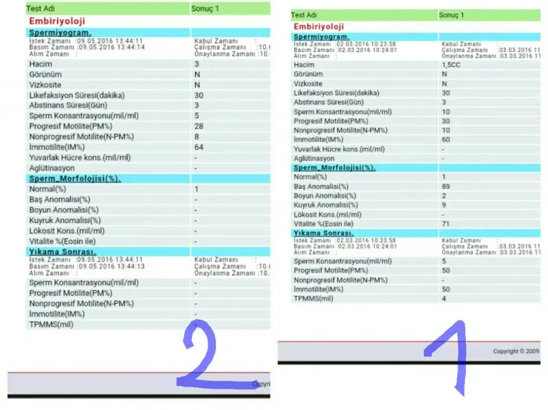 Böyle bende bisey anlamıyorum ama doktorun ağzından duydunuz mu olumlu veya olumsuz şeyler onu merak ettim sayı ve hareketi nasıl mesela ? Her test farklı anlaşılmıyor kiArkadaşlar bu da benim eşimin sonuçları 2.tahlil 1 aylık klomen kullanımı sonucunda oluşan sayılar. Anlayan arkadaşlar yorum yapabilirmisiniz bir de klomen kullanınca sayının artması gerekirken neden azaldı