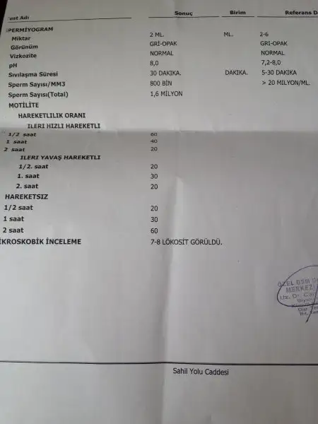 Sayı çok iyi hareketde öyle. Morfoloji güzel. Ph 7-8 arası olmalı likefaksiyon süresi yüksek en fazla yarım saati geçmemeli canım. Ne yediriyon ne içiriyon kocana sayısı çok iyi maşallah