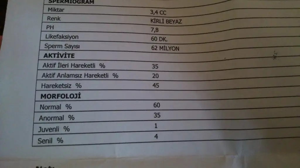 Ben 3 aydır erken menapozla uğraşıyorum. Cumartesi eşimden sperm testi istediler ve sonuç aşağıdaki gibi çıktı.