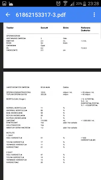 40 milyon toplam Sperm sayısı için olması gerekiyor. Eğer benim dediğim gibiyse sayı çok iyi demektir. Laboratuvar ise orayı arayıp sorabilirsiniz.Ya bi laboratuvarda yaptırdık ordanda mail yoluyla geldi henüz gösteremedik merak ediyorum 40 milyonun altında olmamasi gerekiyor diye duydum.