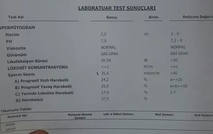 Harekette biraz sıkıntı varArkadaşlar merhabalar aranıza yeni katıldım şimdi üye oldum daha uzun zamandır bu forumu ve topigi merak ediyorum eşimin sperm değerlerini degerlendiriseniz çok sevinirim