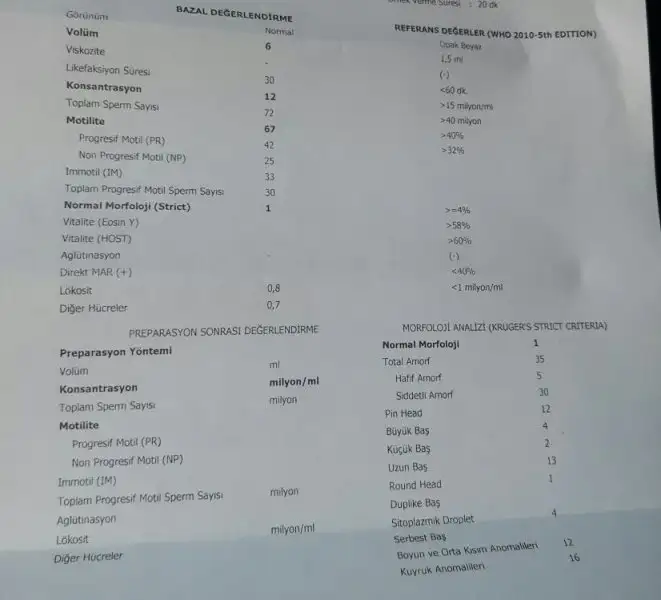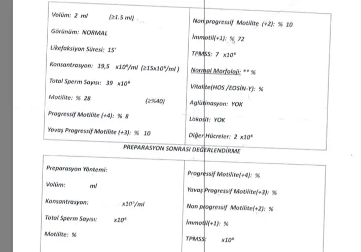Benimde eşimin sonuçları böyle. Aşılama yaptırdık tutmadı kızlar şimdi tüp bebek füşünüyoruz. Bende bi sorun yok çok şükür